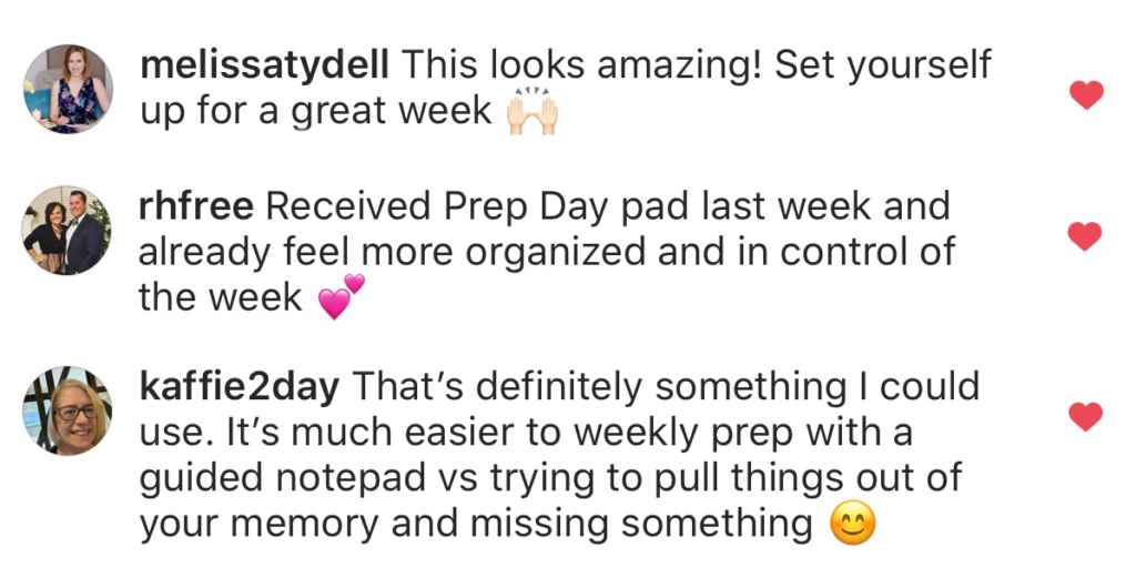 I use Sundays as a prep day by walking through each of the checklist’s prompts. You do you! The point is to write things down and figure out what works for you. Download the FREE Prep Day Checklist in our printable shop and set yourself up for a great week ahead!